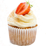 strawberry cake, vanilla buttercream, topped with a fresh strawberry
